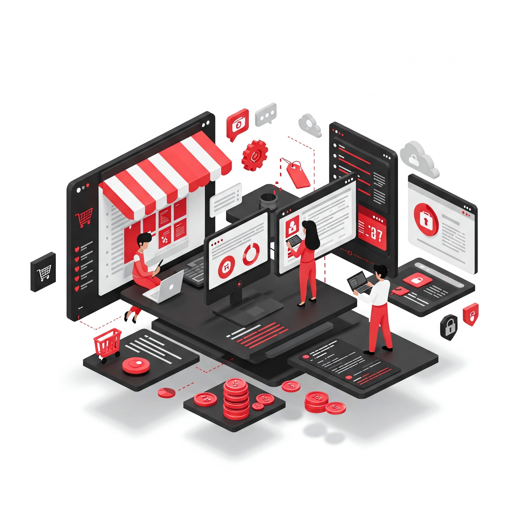 La movilidad y la inmediatez son esenciales para las empresas modernas. Muchas pymes enfrentan el reto de coordinar equipos remotos, atender clientes en diferentes horarios o gestionar inventarios en tiempo real. Sin una aplicación que centralice la información y automatice procesos, el caos y la desorganización se vuelven inevitables. Hemos ayudado a empresas a superar estos desafíos desarrollando aplicaciones web y móviles que conectan a sus equipos, clientes y proveedores en un solo lugar. Desde apps para gestionar reservas y ventas, hasta plataformas colaborativas y sistemas de notificaciones, nuestras soluciones están diseñadas para adaptarse a tu operación y crecer contigo. e-commerce. En Efficiency+ nos encargamos de mantener tu tienda siempre atractiva y funcional: actualizamos productos, precios y contenido, gestionamos inventarios y nos aseguramos de que cada detalle esté alineado con tus objetivos de venta. Así, tu negocio digital nunca se detiene y tus clientes siempre encuentran lo que buscan.